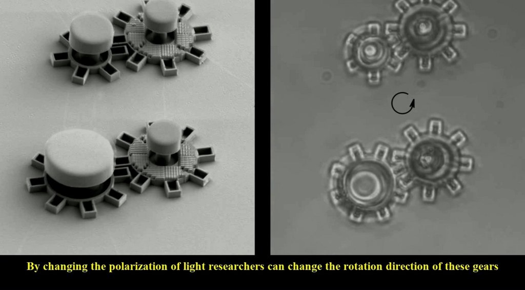 Publishing their results in Nature Communications, the team created gears that each measure about 0.016 millimeters in diameter. A key aspect of their methodology was replacing traditional mechanical drive trains, which transmit power from a source to a machine, with laser light, which is easier to control and doesn’t require direct contact with the device.