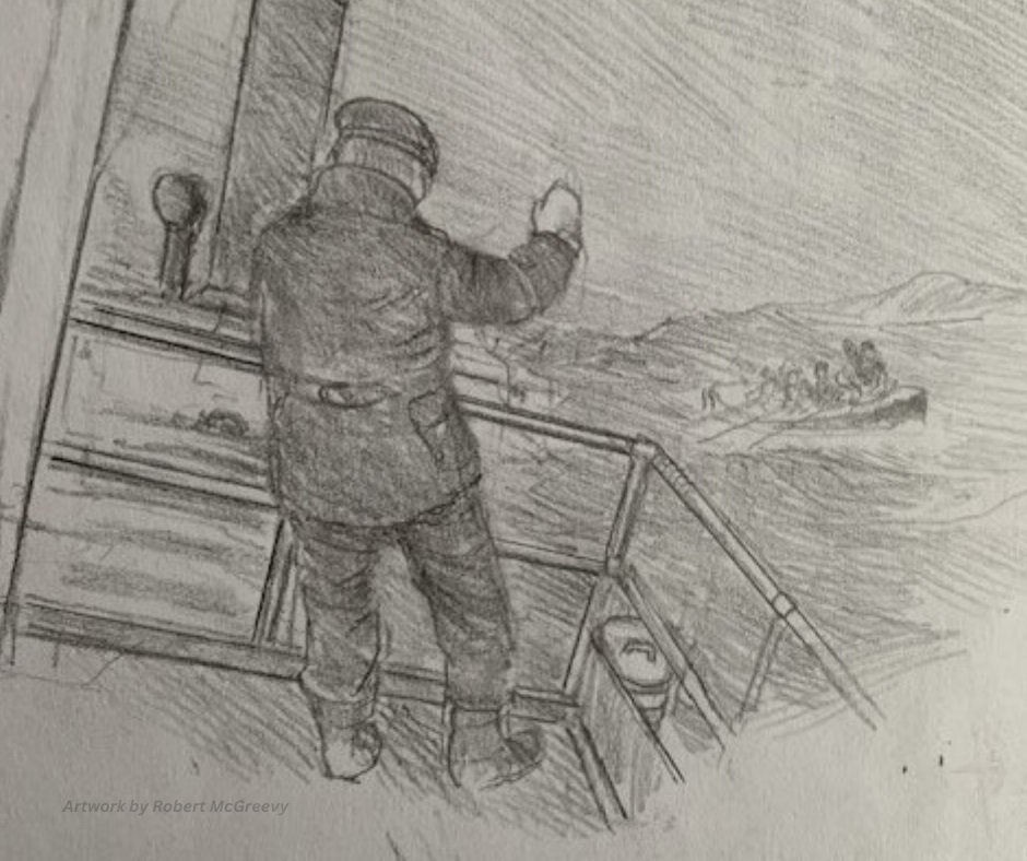 On May 1, as it became clear the vessel would sink, its panicking crew began abandoning it, despite the captain not giving orders to evacuate. Everyone but Burke made it safely onto the Collingwood.