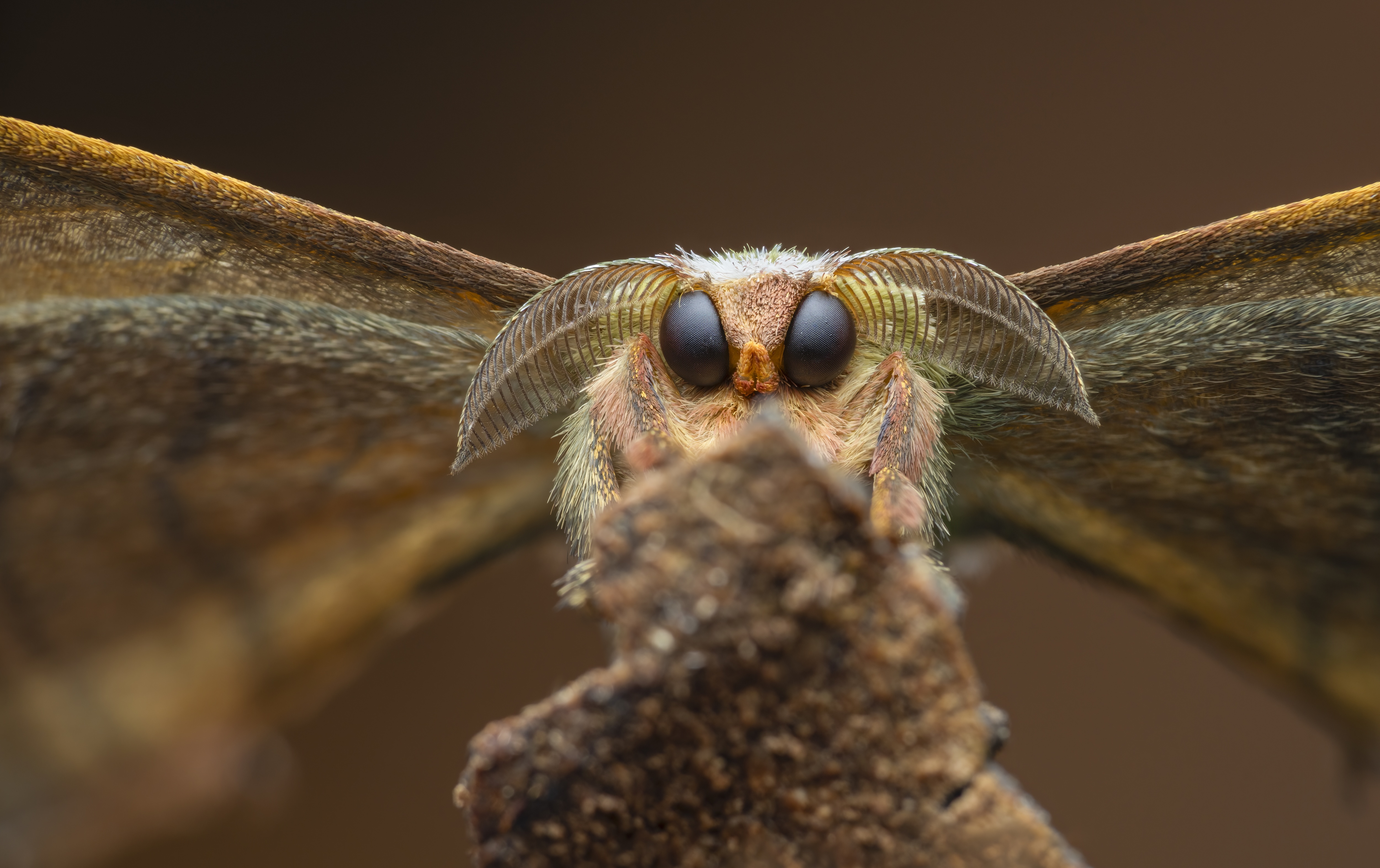 A moth (Bombycidae sp.) in Tinamaste, Costa Rica. “Incredibly photogenic, the large eyes and antenna positions of these moths, especially the males, always lend their portraits a somewhat melancholy feeling. They are a lesson in beautiful subtlety and a reminder to always give even the simplest arthropods and small creatures a second, closer look,” said Hesemans.