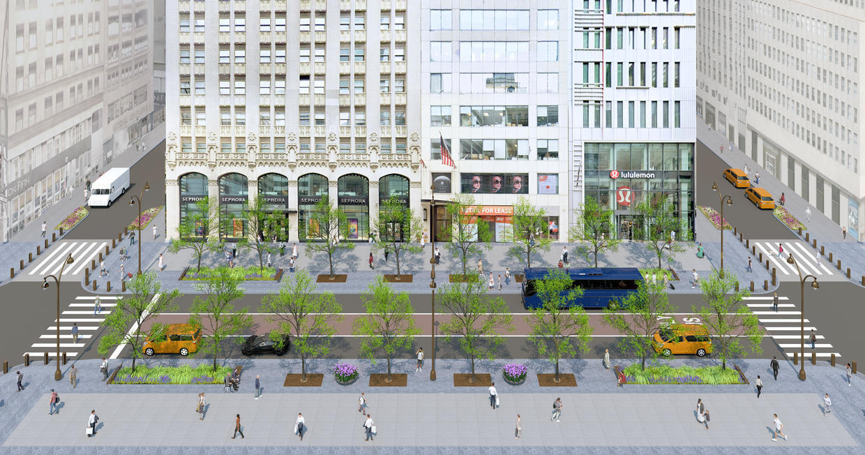 “Locals and visitors use this bustling corridor to commute, shop, and sightsee; it just makes sense to strategically design it with those needs in mind,” said Jackson Chabot, director of organizing and advocacy for the not-for-profit Open Plans. “The wide range of tools — wider sidewalks, traffic calming, curb extensions, loading zones, lighting, plants, and more — will improve nearly every aspect of how Fifth Avenue functions and feels, which we know boosts commerce, community, health, and happiness.”