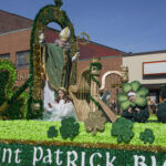 South Boston has its own parade, often featuring elaborate floats like the one seen above. Here, a stand-in for St. Patrick blesses the crowd as he passes.
