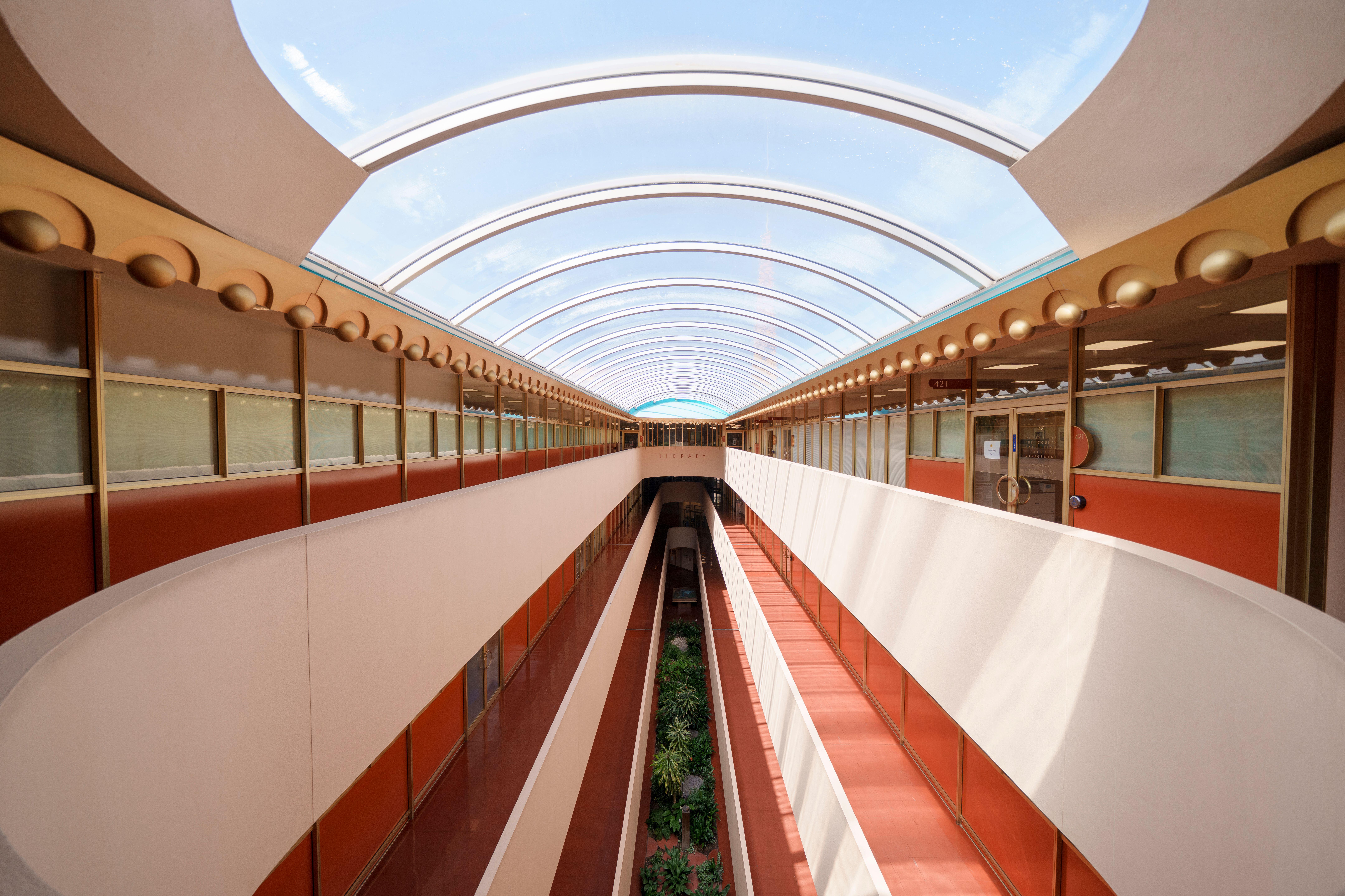 Wright’s last commissioned work sits squarely in downtown San Rafael, California, less than an hour’s drive from San Francisco. As its name suggests, the Marin County Civic Center is a government building, but it’s also a setting for two science fiction movies, THX 1138 and Gattaca — which offers somewhat of a hint as to its appearance.