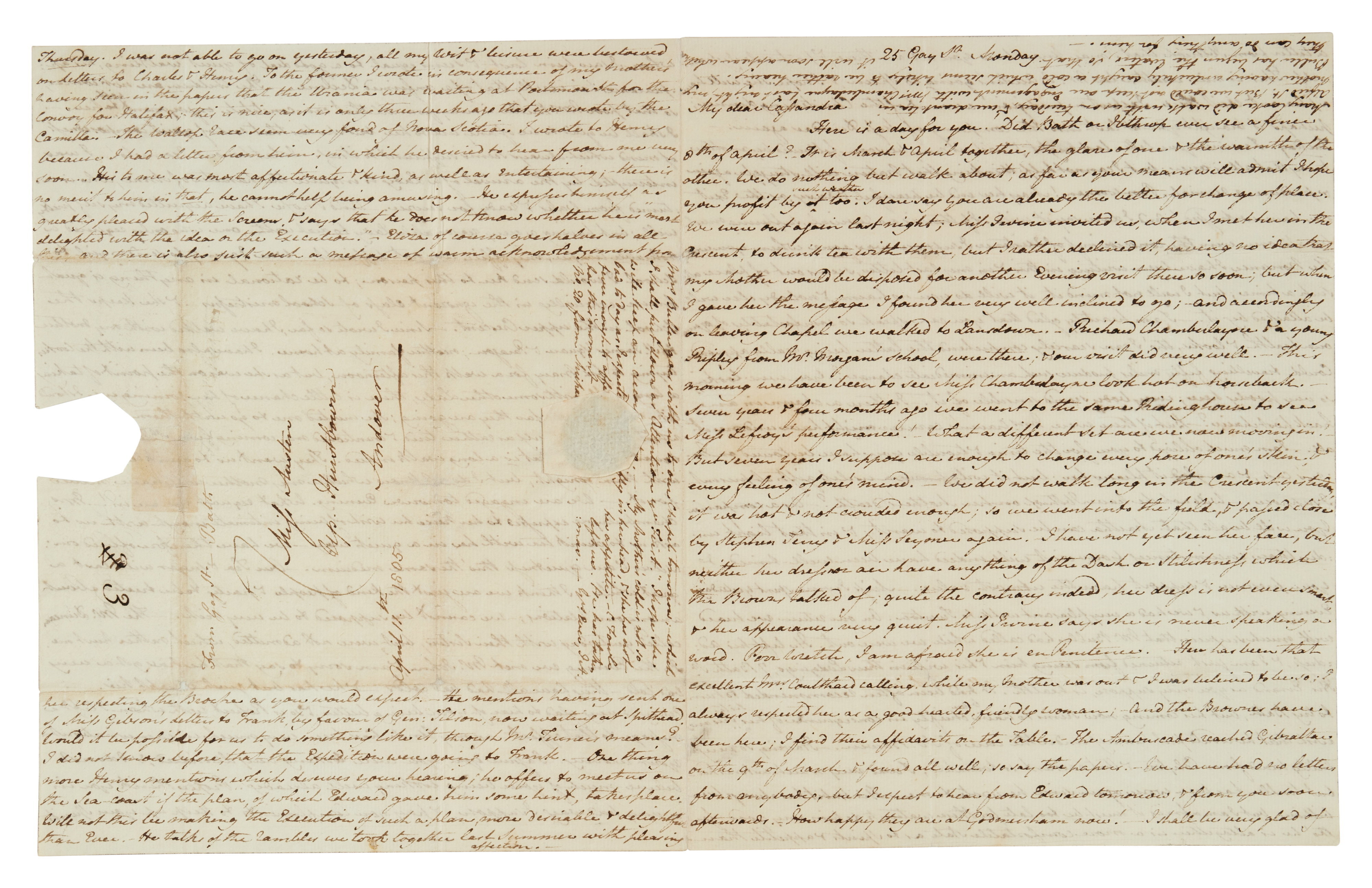 Among the highlights of the upcoming sale is one of Austen’s longest surviving letters. Written to her sister, Cassandra Austen, in 1805, it captures the bustling social life of Bath that would later shape Persuasion, which was published posthumously in 1817, the year she died. It’s estimated to sell for $300,000 to $400,000.