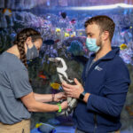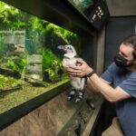 In 2020, a 24-year-old African penguin named Beach Donkey was diagnosed with pododermatitis, a debilitating and chronic condition common among avian species. Also referred to as “bumblefoot,” the disease can cause serious problems, including sepsis and bone infections, if left untreated. So over the past few years, animal care staff at the aquarium have developed a multi-faceted treatment plan to get her back up to speed.