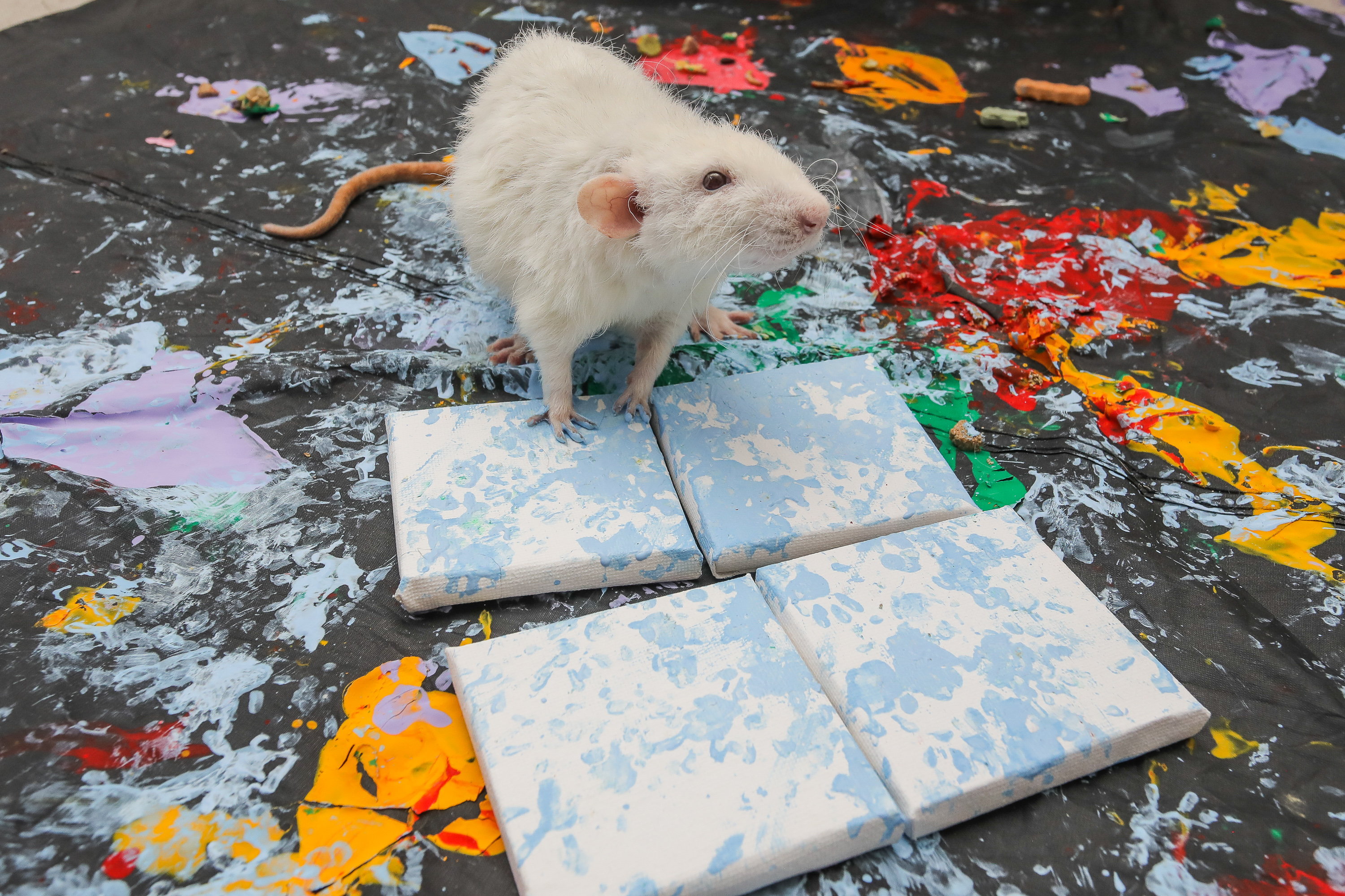 Eighteen-year-old Ella Woodland’s pet rats have a knack for artistic expression, and by guiding them to paint mini masterpieces, she’s helping their talents flourish. There’s a little something in this project for Woodland, too: She’s made around $2,600 to date selling the pieces online.