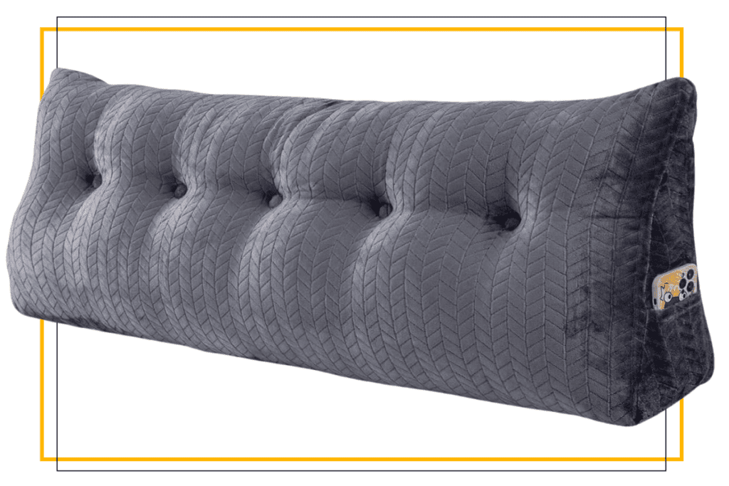 This overstuffed wedge headboard pillow is ideal for reading, watching movies, or, dare we say, snacking in bed. It provides support for your back and neck, comes in assorted colors and sizes, and even has a little side pocket to store your phone or glasses.