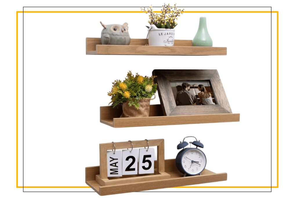 These charming floating shelves have ledges to keep your picture frames and plants in place. We love the way they look on the wall, and that they’re easy to install. Each shelf in the set of three is a different depth, and the sets are available in four colors and six lengths, from 16 to 72 inches.