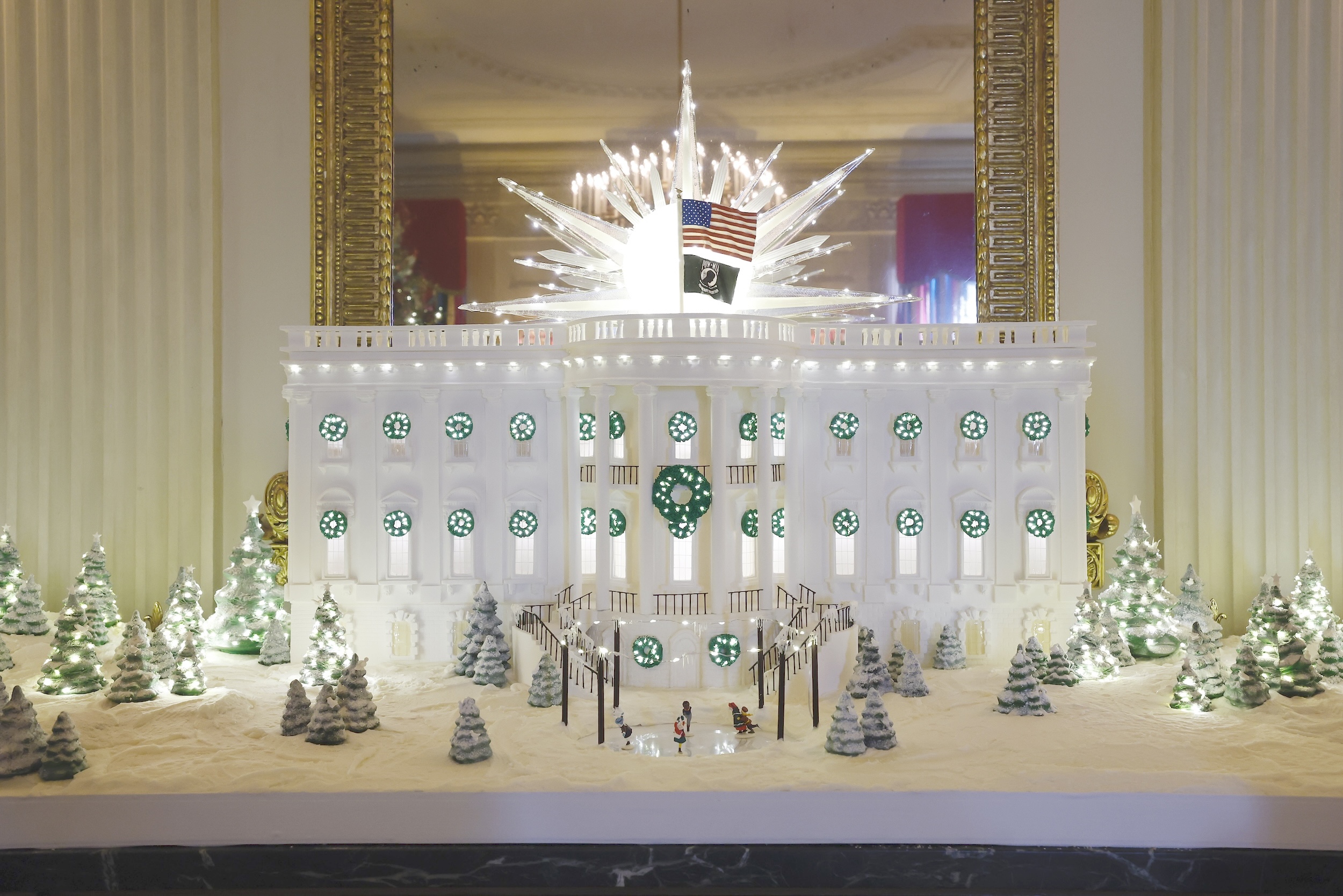 Even the gingerbread White House is a sight to behold. It’s made with 25 sheets of gingerbread, 50 pounds of royal icing, and 45 pounds of chocolate. It carries on a tradition with roots dating all the way back to 1929, when first lady Lou Hoover used gingerbread to adorn a Christmas tree with edible men and horses. In the years since, the sweet treat has been deployed to make everything from teddy bears to cottages to milkmaids.