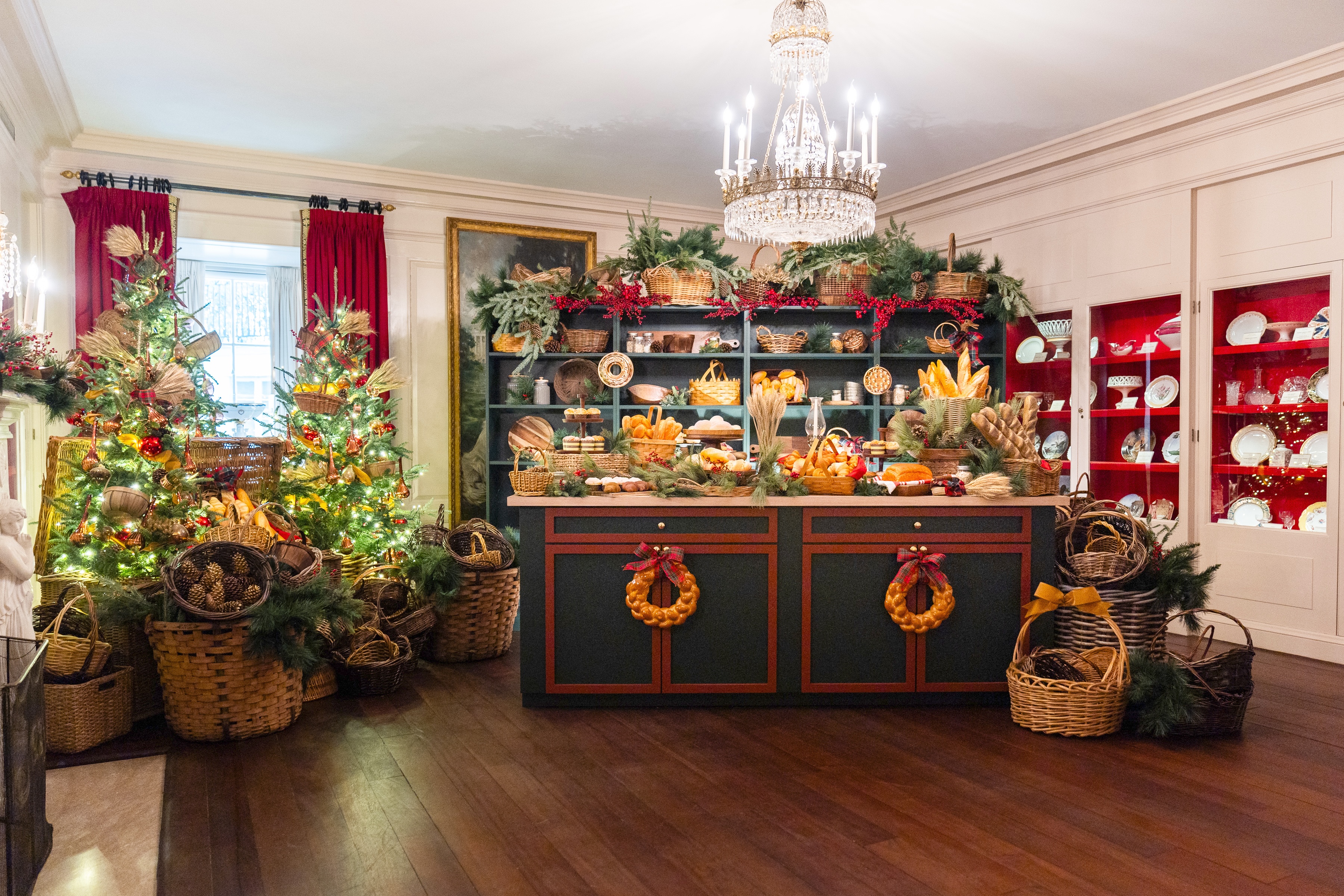 In the spirit of this year’s theme, a “season of peace and light,” thousands of paper doves and drawings made by children around the country are also on display, as well as florals and fruits in the Diplomatic Reception Room as a “nod to the importance of hospitality and grace to peaceful diplomacy.” (Fun fact: This room opened to the general public for the first time this fall — and if it looks familiar to the history buffs out there, that’s because it was the site of President Franklin D. Roosevelt’s famous fireside chats.)