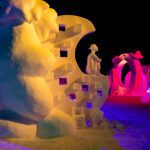 And when we say snow sculpture, we aren’t referring to Frosty the Snowman figures with coal buttons and carrot noses. Rather, the competing teams are tasked with building stunning, 12-foot-tall artworks from 25-ton blocks of snow using only hand tools (check out how those massive blocks are created).