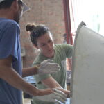 The double-layered ceramic nests are built by hand, a 72-hour process that requires a high level of attention to detail to ensure the raw materials are combined in the right ratios and layered in a specific sequence to maintain the strength and integrity of the end products. A pattern of ventilation holes designed to increase thermal venting is drilled into the top of the nests, per a Dallas Zoo blog post written by Kevin Graham, nest development project coordinator for the Association of Zoos and Aquariums and leader of the African Penguin Nest Project.
