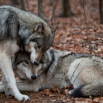 According to the Animal Ark Wildlife Sanctuary, gray wolves are monogamous and typically mate for life, though it is only the alpha pair that has “sexual rights during breeding season. Females are normally sexually mature at 2 years of age. Males are sexually mature at 2 to 3 years of age.”