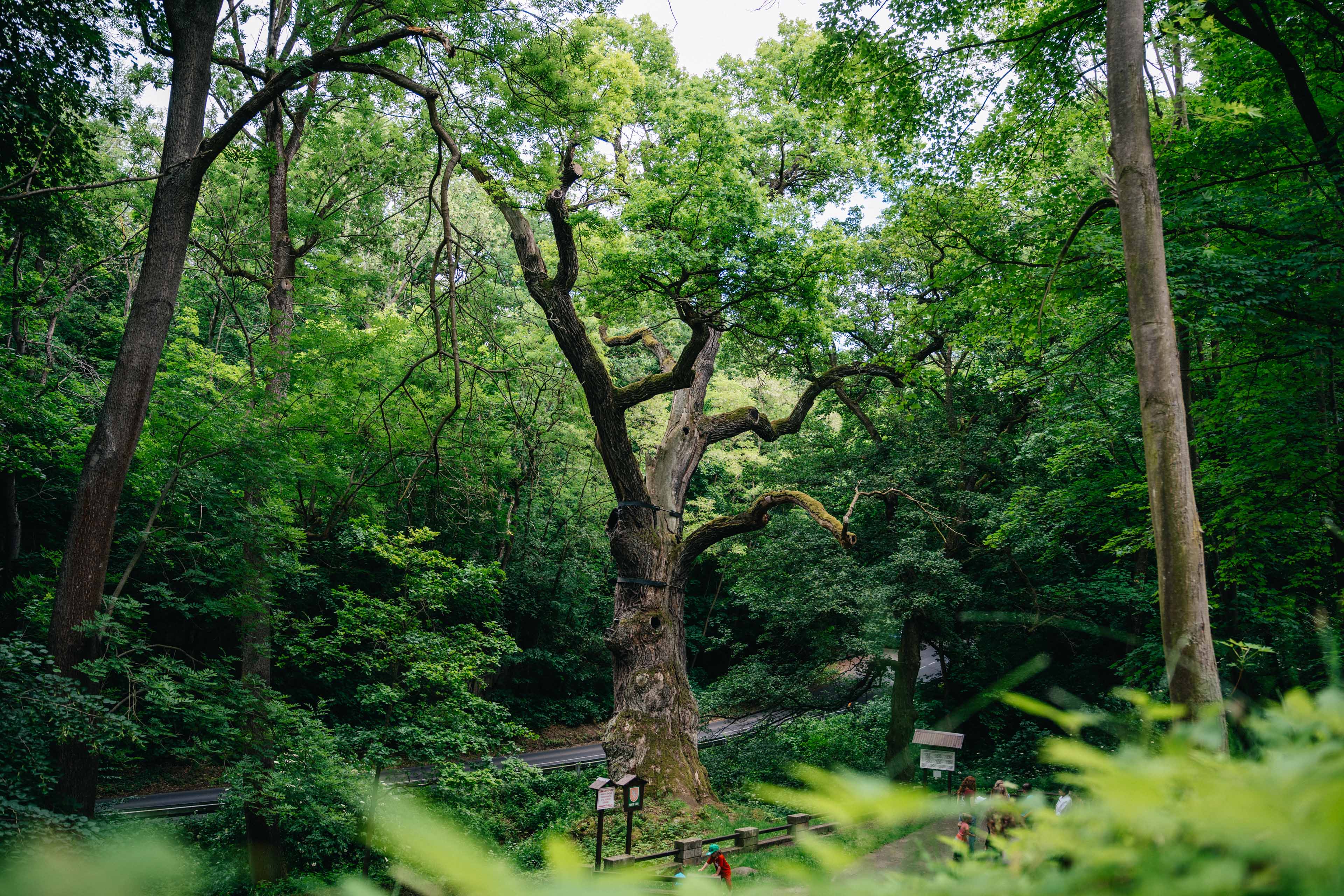 “This oak is among the oldest trees in the Czech Republic, said to be 1,000 years old. Now a protected heritage tree, it has survived two separate fires, in 1993 and 1995, and continues to watch over the children of the nearby forest kindergarten. According to legend, Prince Ulrich once rode through these woods and saw a young peasant woman, Božena, washing clothes by a stream beneath the oak. He fell in love at first sight and later married her, making her a princess.”