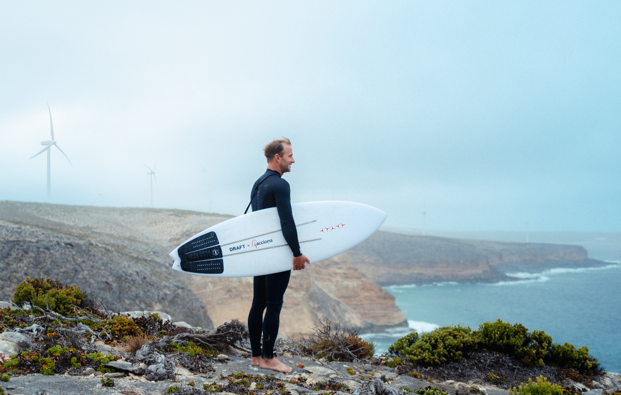 The boards are the result of a collab between renewable energy and infrastructure company Acciona and Australian pro surfer Josh Kerr’s brand Draft Surf, as part of an initiative exploring novel ways to transform decommissioned turbine blades into new products.