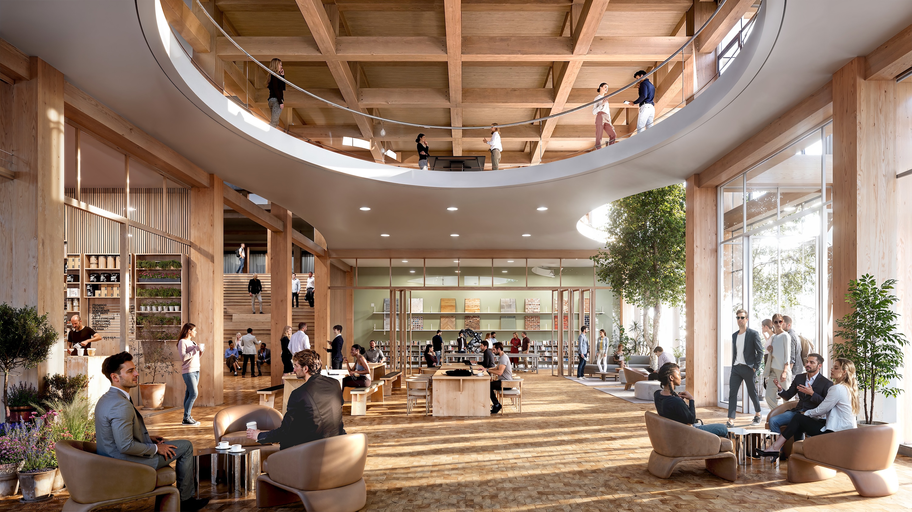 Aside from creating less carbon emissions, timber has another major eco-friendly benefit: It’s recyclable. When a wooden structure comes down, the materials could be used to build furniture or burned as biofuel. Additionally, research has pointed to buildings made with natural materials like wood positively contributing to health and well-being. And, of course, it’s easy on the eyes.