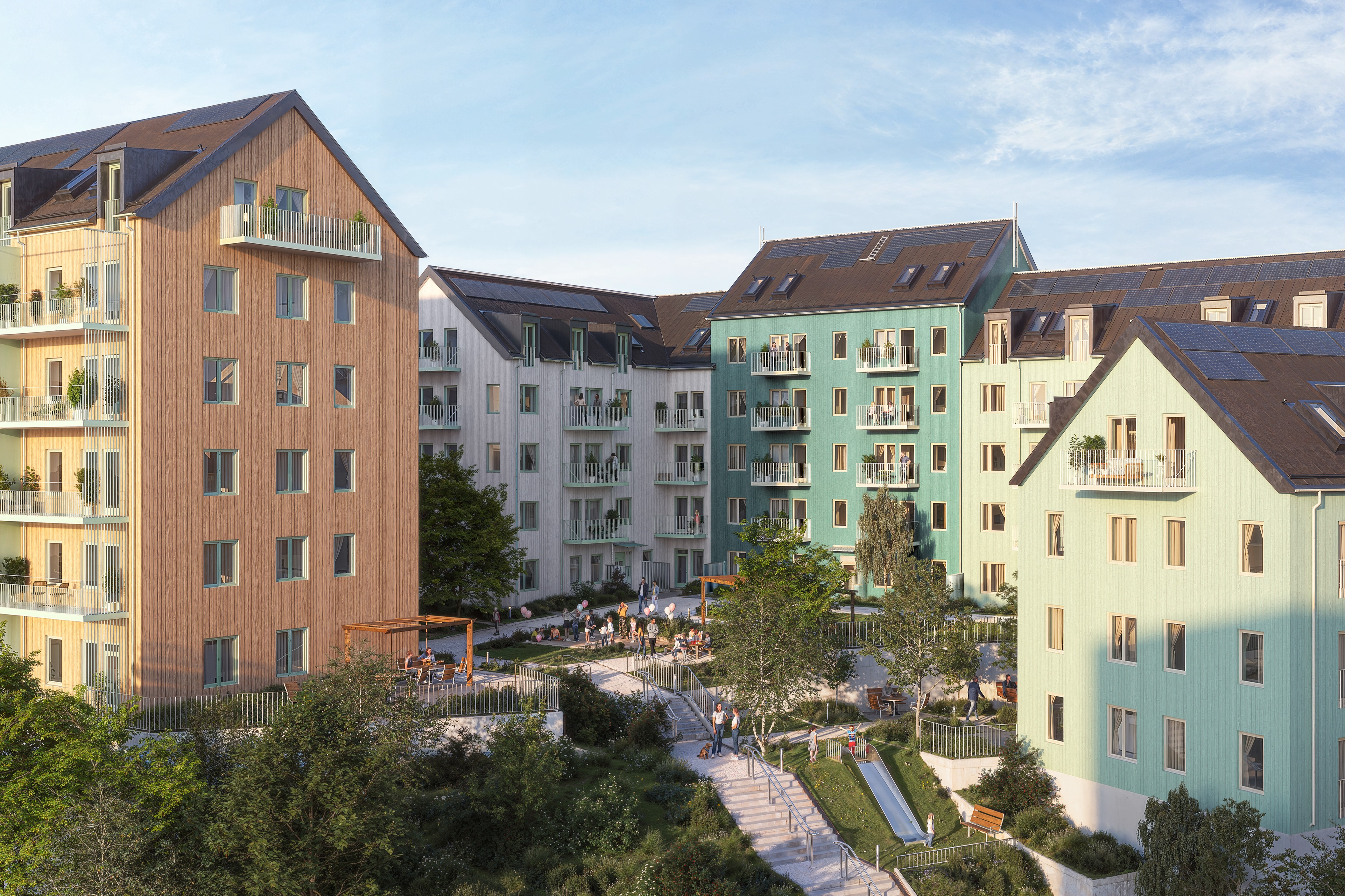 Construction began a few months ahead of schedule in October 2024 with Kvarter 7, a car-free block in the Stockholm neighborhood of Sickla that will feature three residential buildings comprising 80 apartments. Made with fire-proofed cross-laminated timber, the city is being designed by Danish studio Henning Larsen and Swedish firm White Arkitekter. Other, local architects will be brought on as the project progresses.