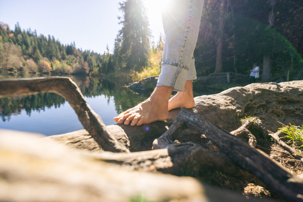 - Take off your boots at the top of a hilly hike or on a forest trail