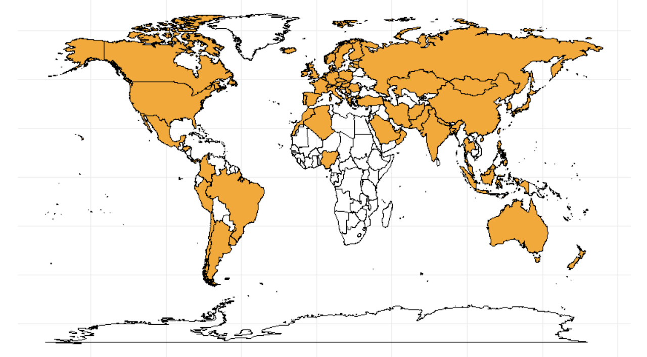 As of Oct. 2024, highlighted countries have at least one research partner.