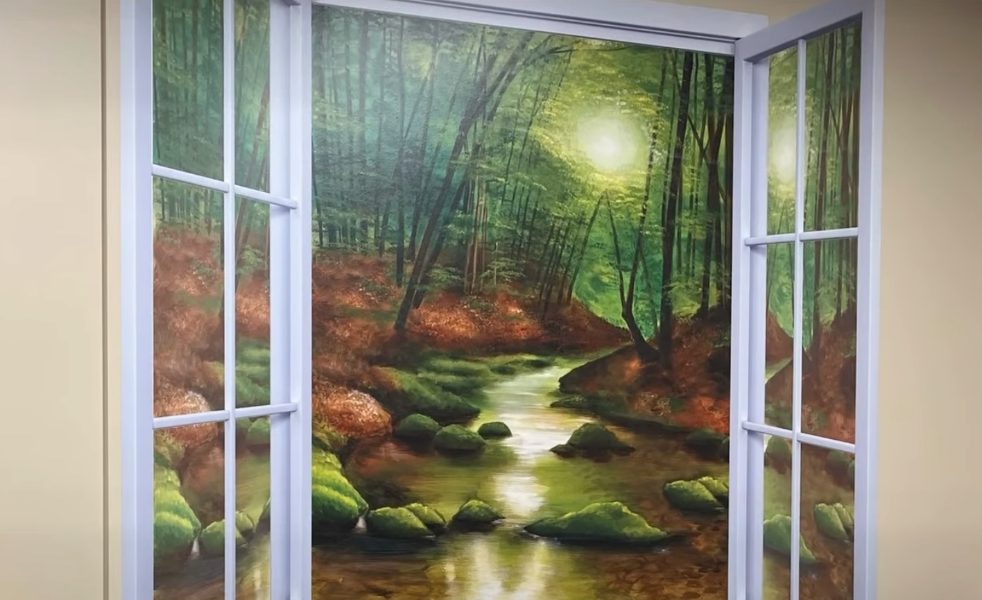 Wall left the hospital in 2011, but that exchange stuck with her, and two years after moving on, she had an idea for how people like that patient might experience some of the same joy she’d felt that spring day: If they couldn’t look out on the natural world, she’d bring the natural world to them. Specifically, she’d paint bright landscape murals, or as she calls them, “LandEscapes,” and install them in hospitals. She got on Kickstarter to raise money for the effort, and soon enough, her massive, colorful paintings were gracing the walls of local hospitals.