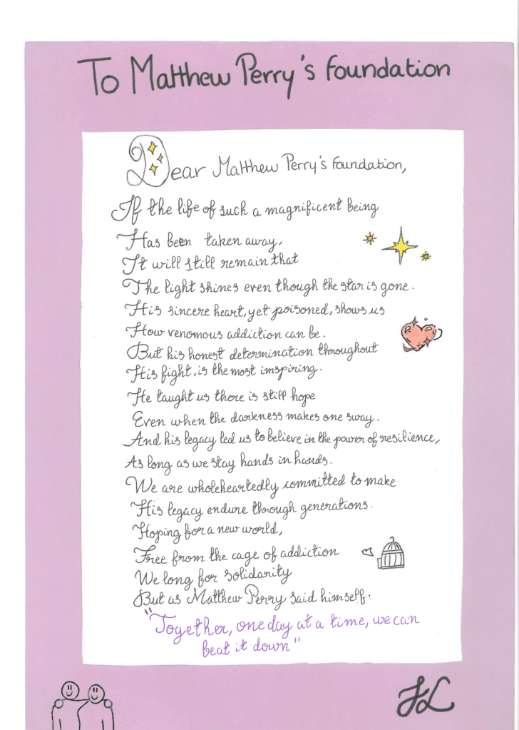 Matthew Perry struggled with drug and alcohol addiction for decades, and had long dreamed of starting an organization to destigmatize substance abuse disorder and help those seeking treatment. After he died in 2023, Perry’s former publicist and manager both took up the torch, launching the Matthew Perry Foundation the same year. Now, the actor’s legacy has reached all the way to Montargis, France, where it helped a group of 12th graders express their new understanding of addiction through art.