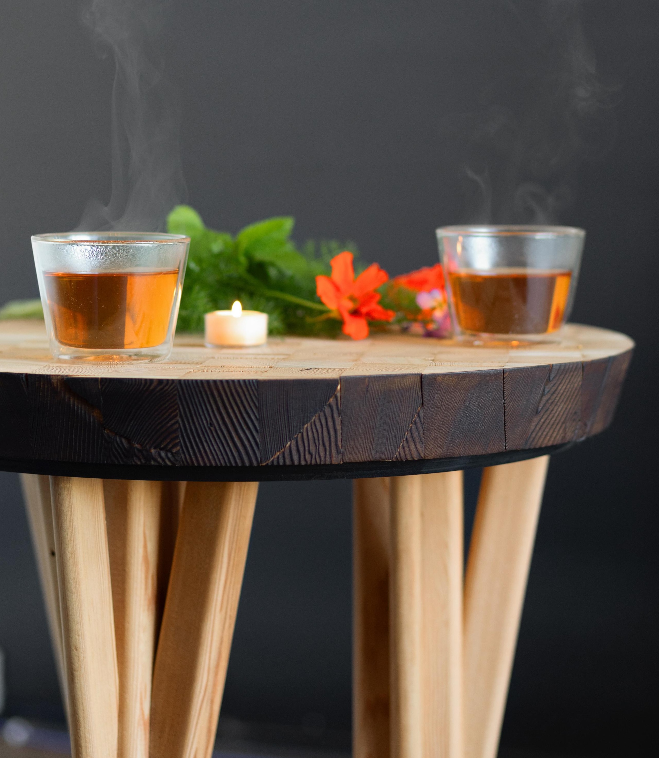 The limited-edition tables, available until June 30, come in two styles: a small version with metal hairpin legs and a large one with wooden branch legs. They’re made using Shou Sugi Ban, a Japanese method that chars the wood and increases its resistance to fire and water, creating dark edges and highlighting the wood grain’s pattern in the process. As a bonus, Formr plants a tree for every order, and all come in eco-friendly packaging.