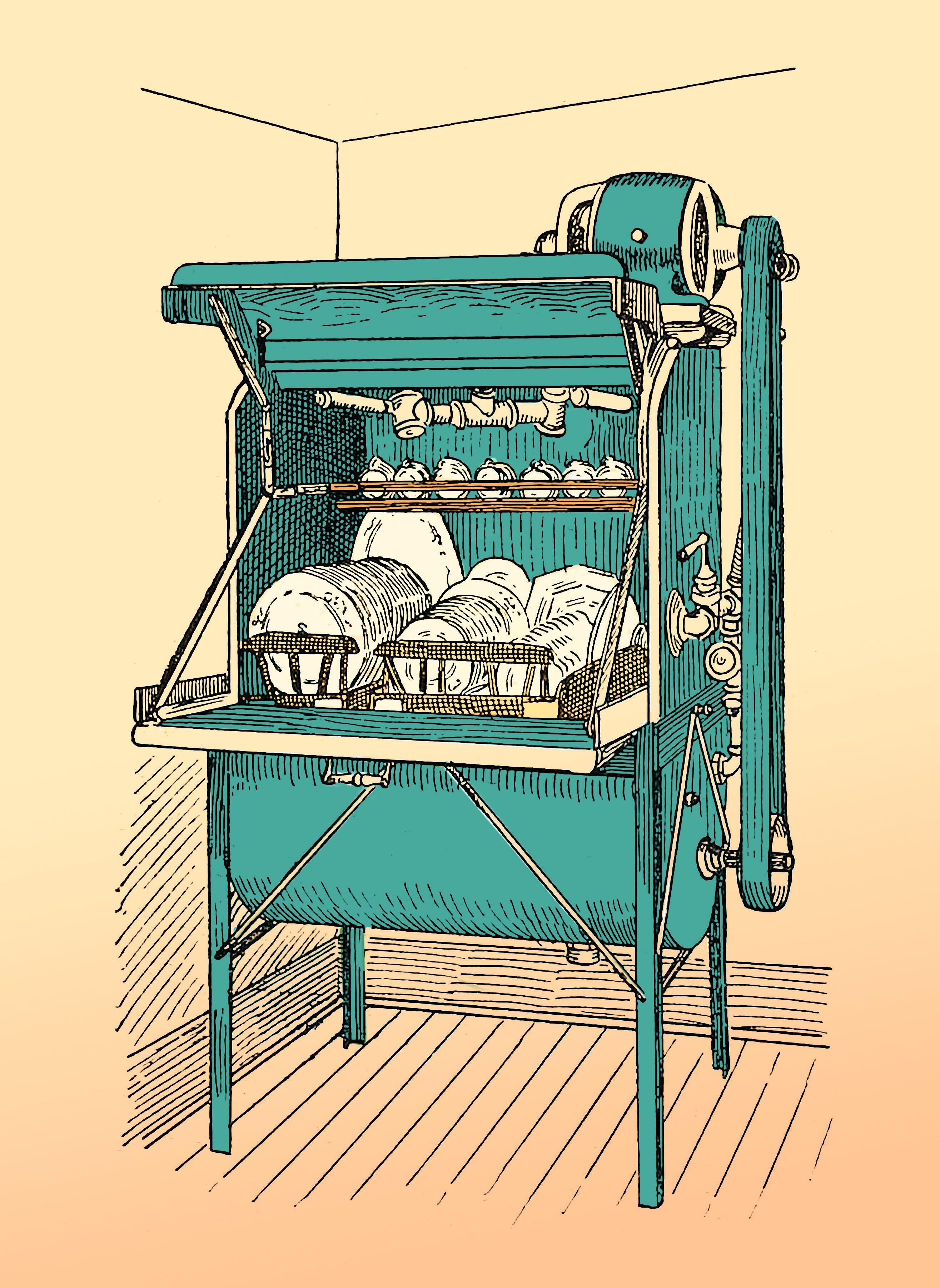 Cochrane fashioned a design that included water jets, a dishrack, wire interior compartments, and a motor-powered wheel that released soapy water. While she found it difficult to secure help — men “insisted on having their own way with my invention until they convinced themselves my way was the better,” she said — a mechanic named George Butters eventually built the prototype in 1886.
