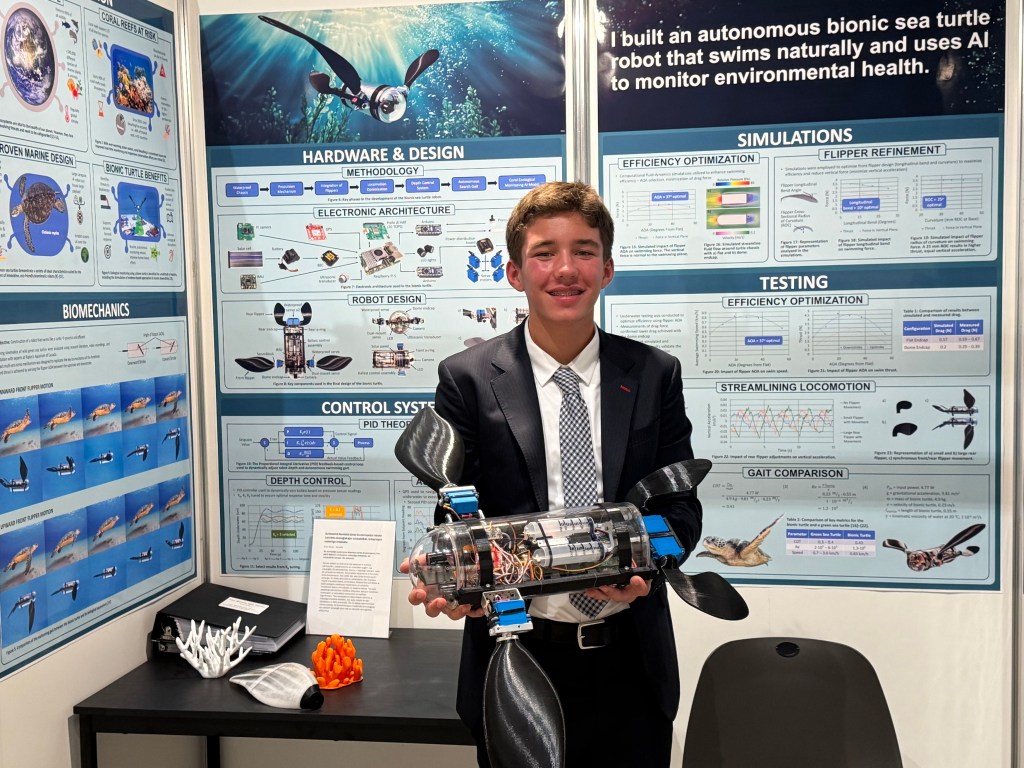 It’s shaped like a turtle and swims like a turtle — but it’s actually a bionic robot. Evan Budz, a 15-year-old resident of Ontario, Canada, recently won a first-place prize in the European Union Contest for Young Scientists 2025 for his invention of an autonomous bionic sea turtle robot.
