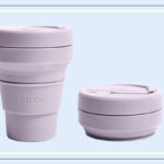 For a smaller travel cup option, we love this collapsible, 12-ounce mug. It’s available in pretty pastel shades like lilac, aquamarine, and carnation as well as classics like carbon, sage, and denim. Founded by three dads in Brooklyn, New York, Stojo is “on a mission to end disposable culture — one reusable at a time.”