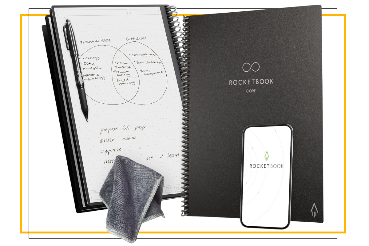 Help pop swap out his rotation of flimsy pads for one reusable notebook. Rocketbook’s spiral notebook works like a traditional pad, except you can digitize what you want to keep (via the app) and erase what you don’t by wiping a damp cloth across the page. It’s ideal for doodling, note taking, brainstorming, and curbing paper waste. Pair it with some erasable pens.