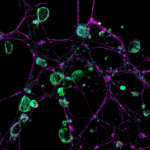 “Nerve cells are frequently overlooked in studies of the tumor microenvironment — which also includes blood vessels, immune cells, and many others — but they play a significant role in cancer patients’ survival and quality of life. Using genetically engineered mini-organs, the Jacks and Hwang Labs created a 3D model system where pancreatic cancer cells (green/cyan) interact with nerve cells (magenta). They seek to understand how the nervous system impacts tumor formation, growth, metastasis, and even drug resistance.”