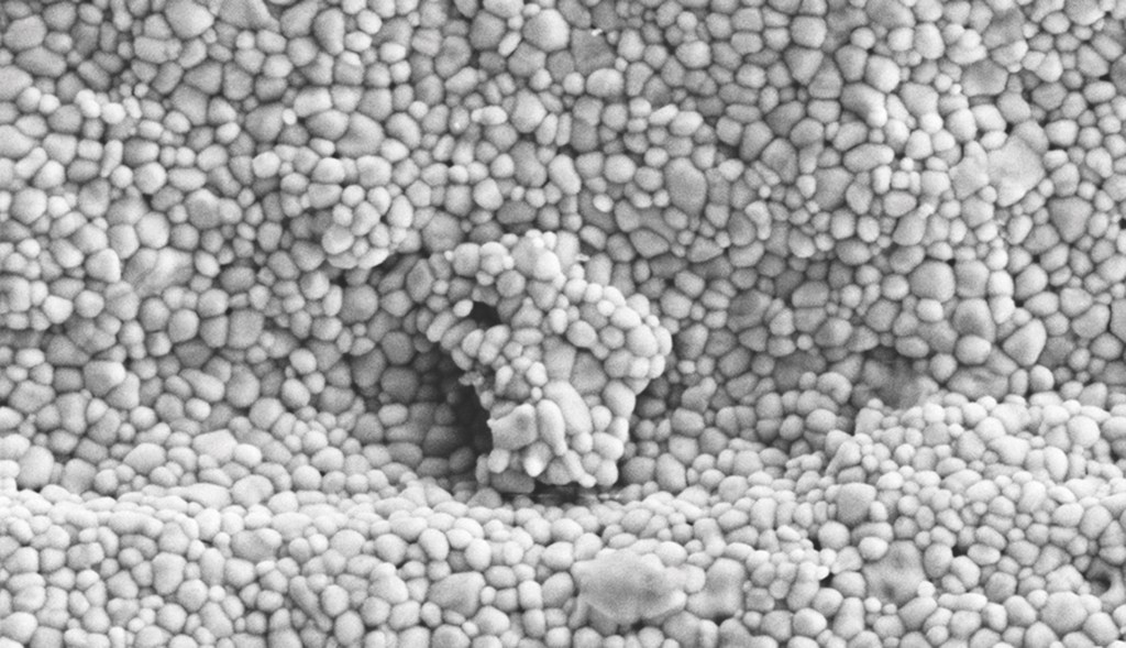 “Oxidation pebbles the surface of a cladding tube, a layer separating fuel rods from coolant in a nuclear reactor, including a 400-nanometer lump resembling the state of Wisconsin. UW-Madison researchers study wear on cladding to explain changes in qualities like heat transfer during potential accident conditions.”