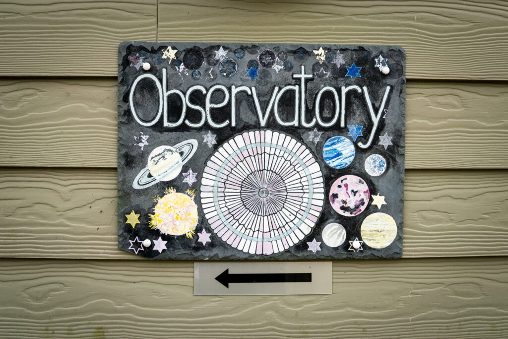 Within the observatory, there is a permanently polar- and star- aligned Meade LX200 12-inch telescope and a new era “smart” telescope called the Unistellar Ev-Scope. There are also numerous other manual telescopes and Sky-Watcher Dobsonians for beginners.