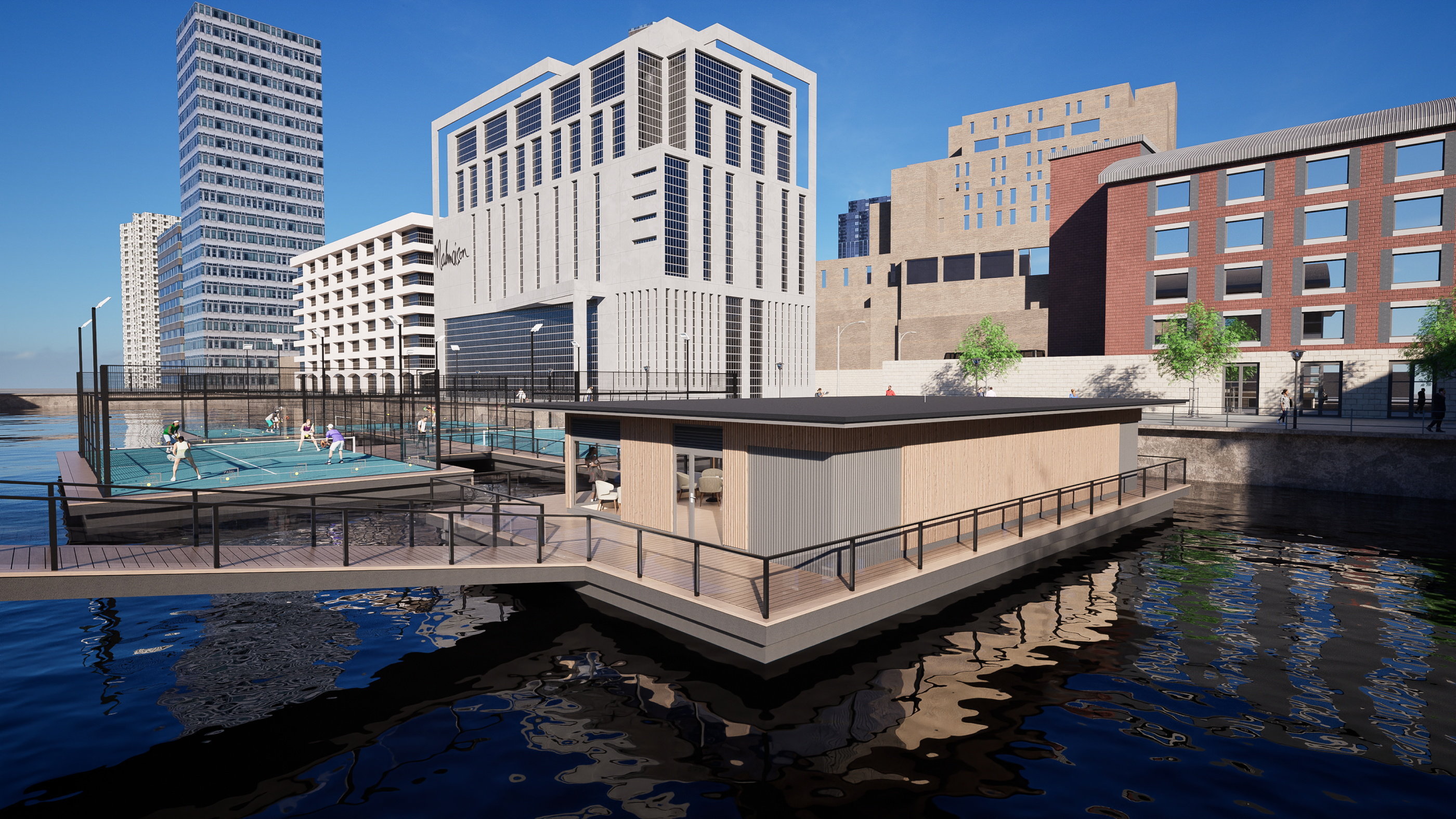 He continued, “As a padel enthusiast, I know firsthand how fun, accessible, and social this sport is. This new floating padel facility will be a must-visit destination for players around the world while also providing a new amenity for residents and workers in Liverpool City Centre [that] they have never had before. Whether they’re playing, spectating, or socializing in the club, we look forward to our community discovering how much fun this sport is for all.”